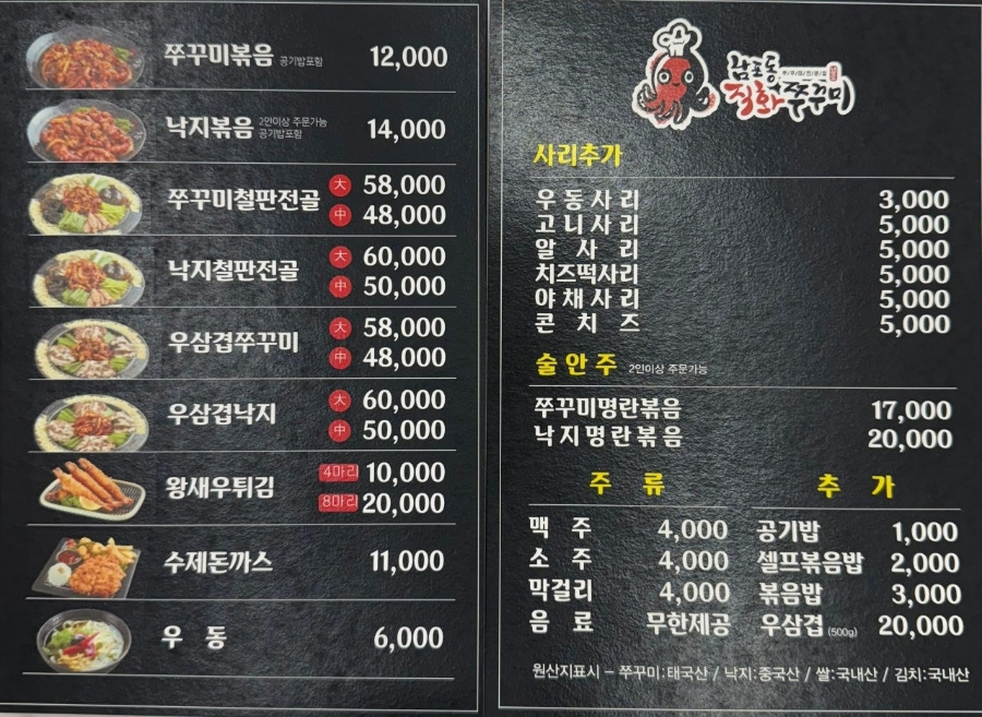 그래서 고민에 고민을 하다 알고니 태태아빠 먹고, 쭈꾸미 태태 엄마 먹고!! 결정으로 쭈꾸미철판 전골로 당첨 탕탕!!