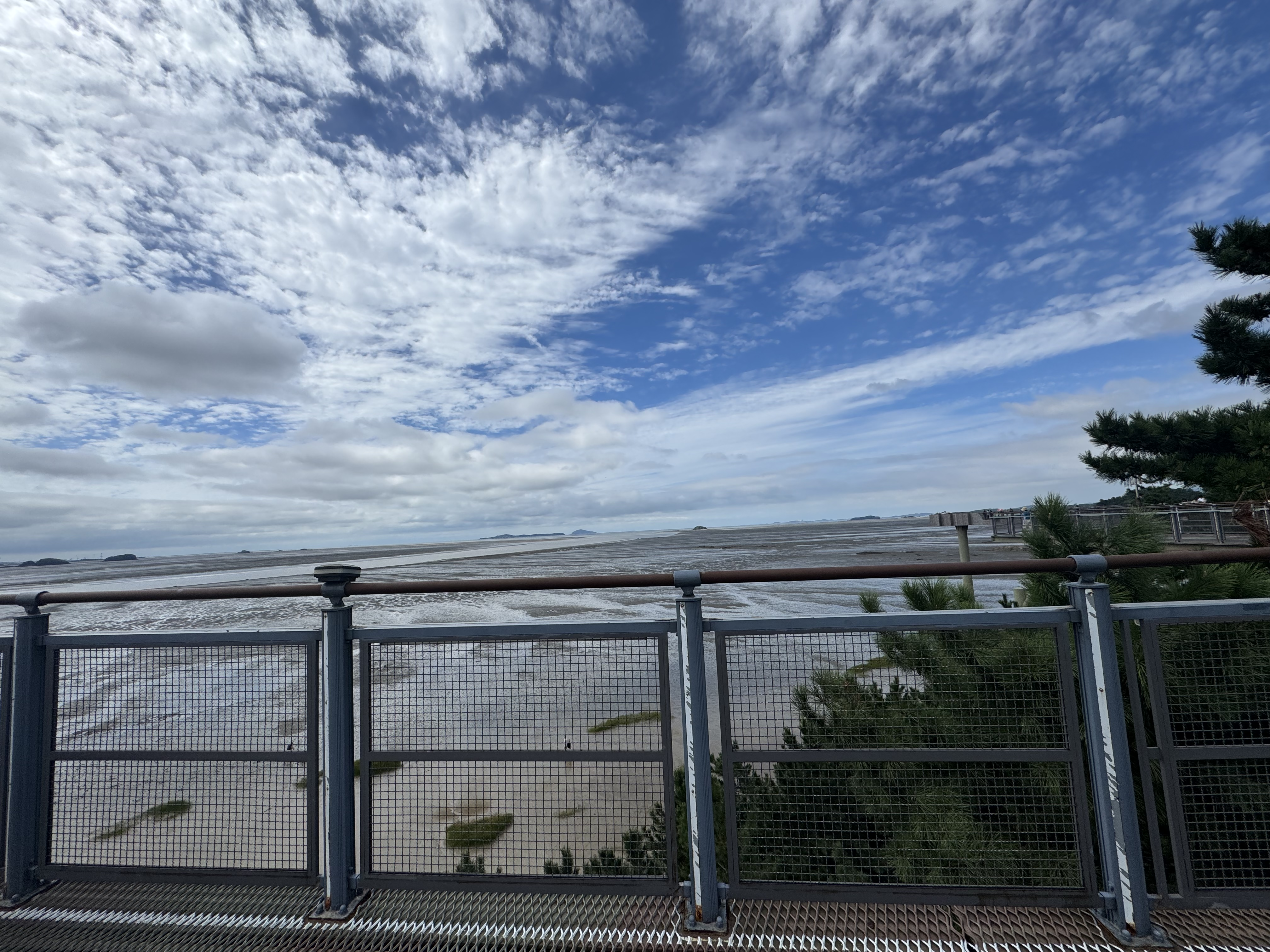 바로 아래는 바다고 뻘이예요, 저희가 올라갔을땐 물이 다 빠진터라 맨발로 뻘에서 무언갈 잡고 있으신 분들이 많아서