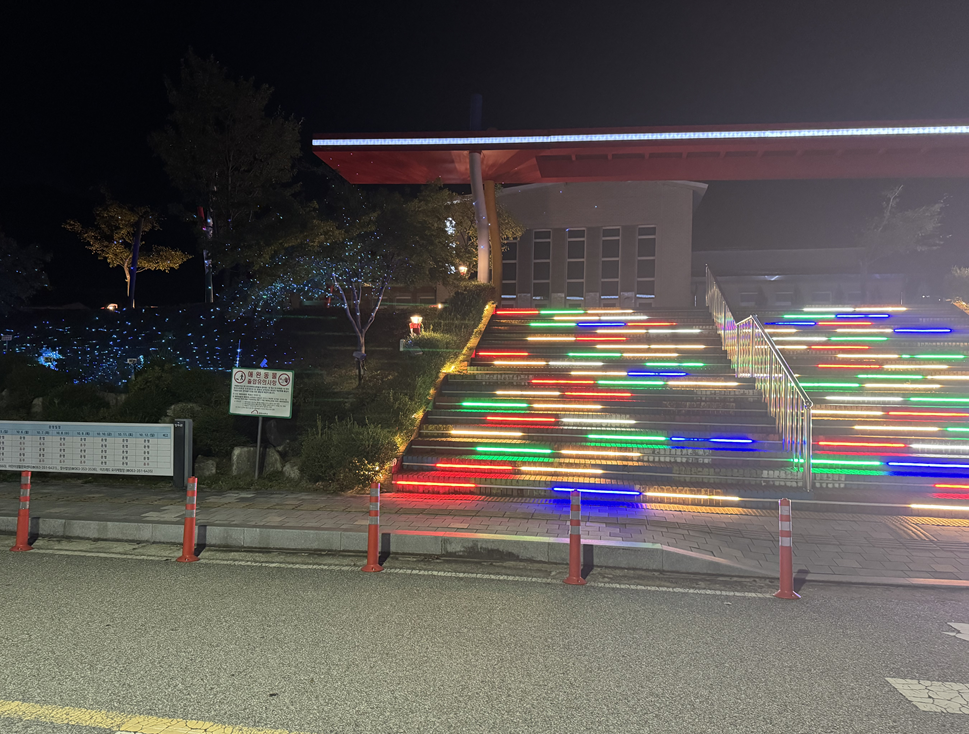 저 계단은 밤에 꺼졋다 사람이 근처에 가면 불이 켜져요 너무예쁘더라고요.